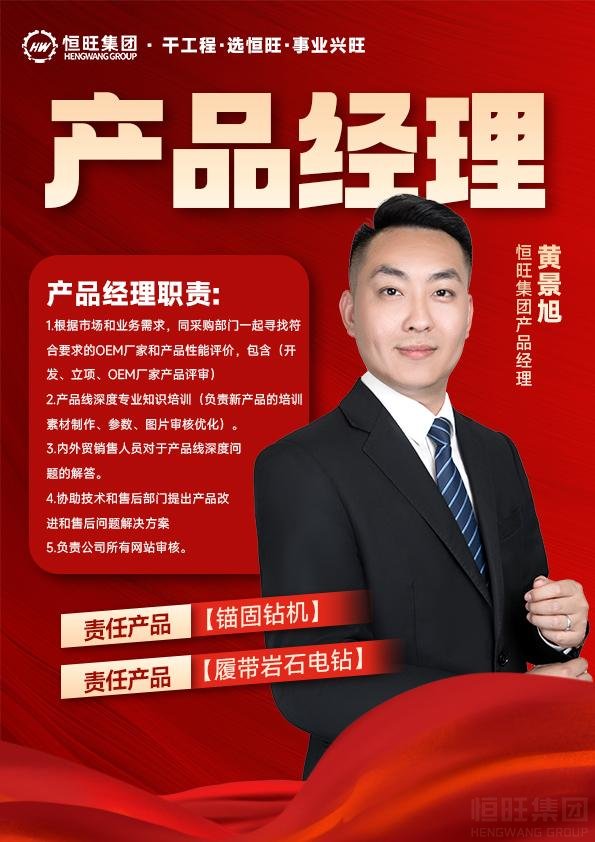 黃景旭,責(zé)任產(chǎn)品:錨固鉆機、履帶巖石電鉆